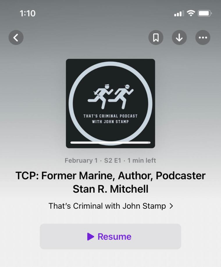 I was interviewed by John Stamp, who spent twenty years in law enforcement, rising from city cop to eventually serving as a Special Agent with the FBI and NCIS. You can hear that interview here on Apple Podcasts. (Interview begins at the 5:05 mark.)